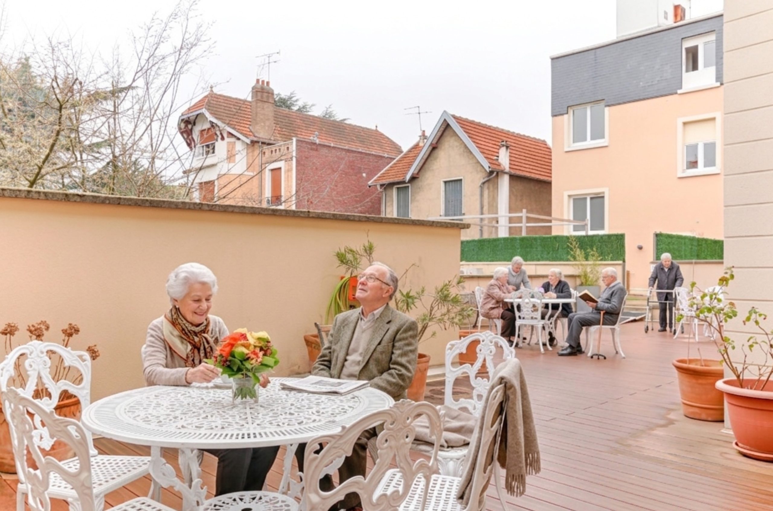 La résidence dispose de deux grandes terrasses et d’un patio aménagés avec goût, offrant des espaces de détente et de socialisation, propices aux échanges et au maintien du lien social.